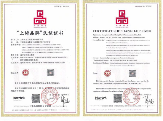 Intertek為老字號雷允上藥業頒發“上海品牌”認證證書